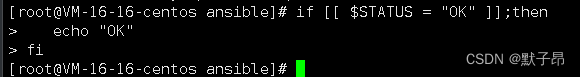 if [[ $STATUS = "OK" ]];then //双中括号, == 改成 =echo "OK"