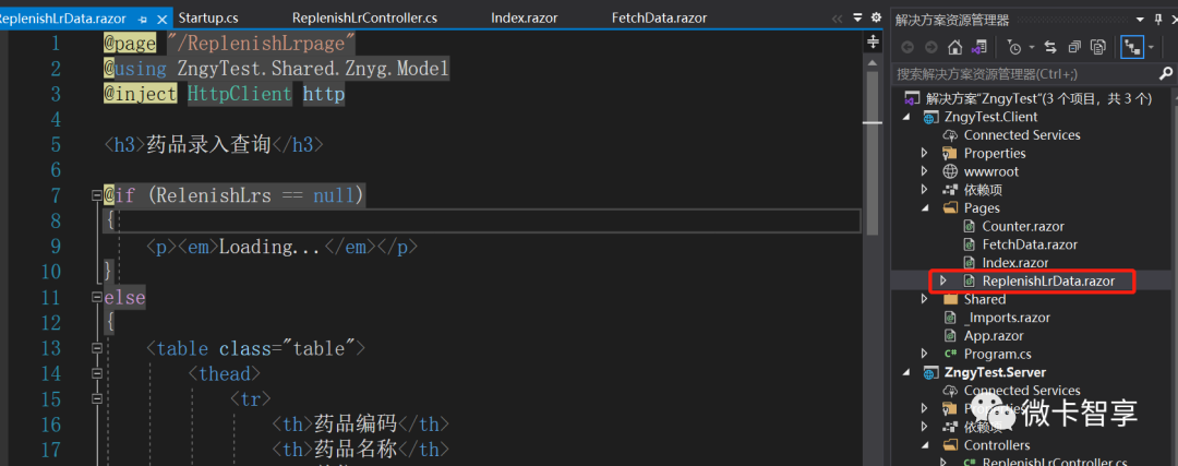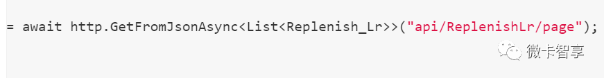 }@code {private List RelenishLrs;protected override async Task OnInitializedAsync(){RelenishLrs = await http.GetFromJsonAsync>("api/ReplenishLr/page");}