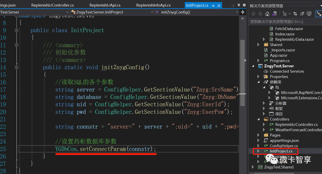 然后新建了一个InitProject的类,里面写读取数据库的参数的静态方法。