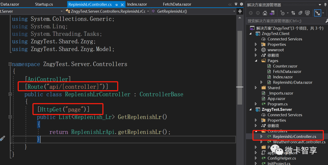 服务端也添加对应的Controller,函数中也对应的Api的地址。