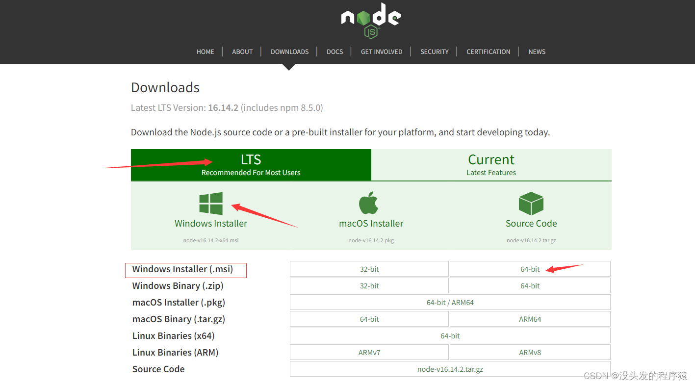 1.下载对应你系统的Node.js版本:https://nodejs.org/en/download/