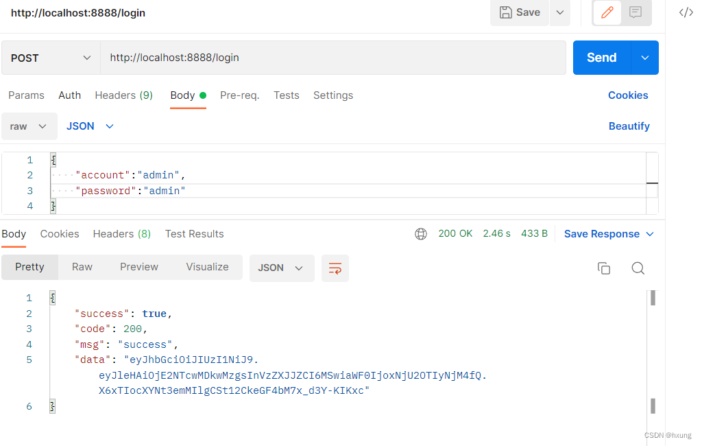 {"success": true,"code": 200,"msg": "success","data": "token"