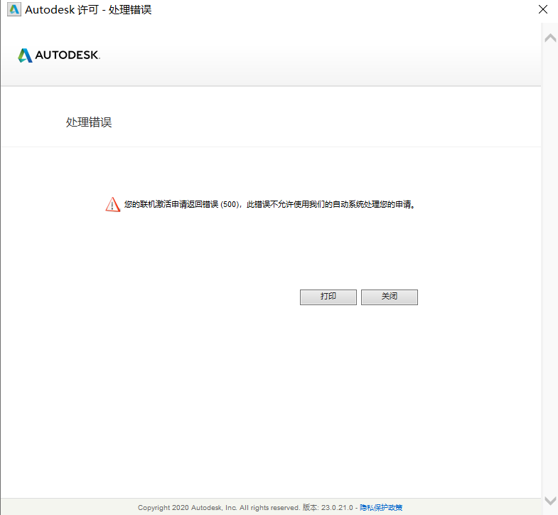 2. 运行CAD2022的时候还会显示出,请输入序列号和许可证的界面,按照2020的破解方式输入序列号,会弹出下边的问题;