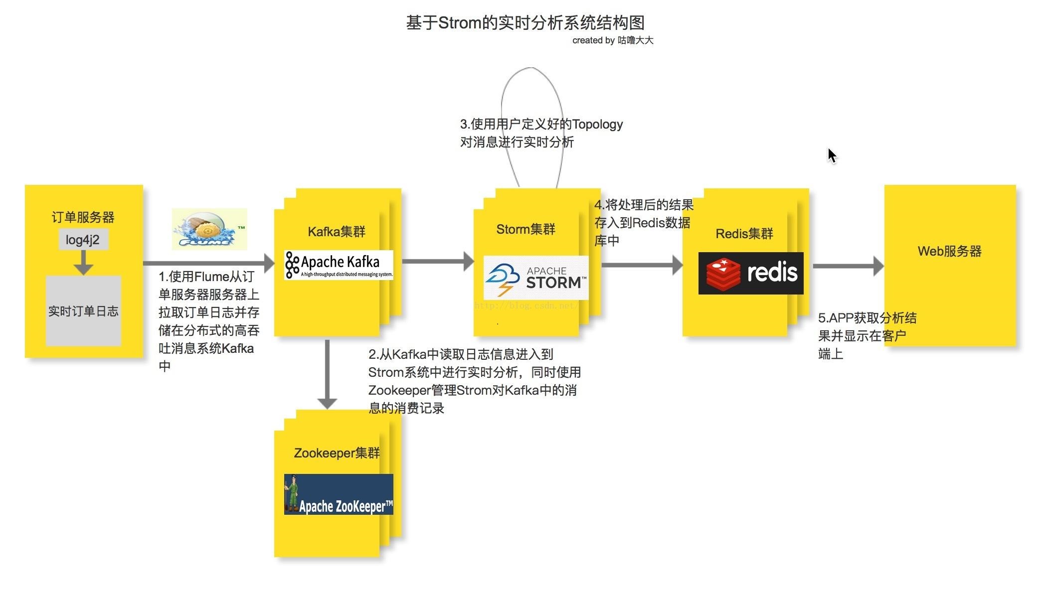 Topology Storm中运行的一个实时应用程序的名称。将 Spout、 Bolt整合起来的拓扑图。定义了 Spout和 Bolt的结合关系、并发数量、配置等等