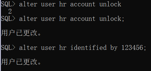 SQL> alter user hr identified by 123456;