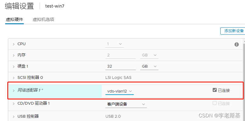 首先利用两台ESXI服务器进行vds创建工作,涉及vlan11、12、13三个vlan,上行接口为ESXI服务器port-2口。