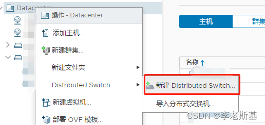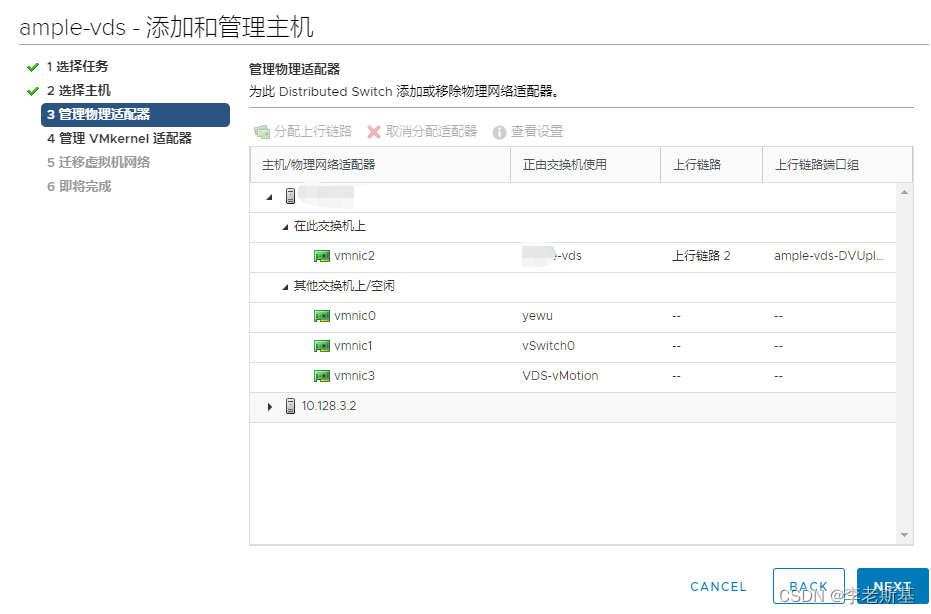 第三步、在新建好的vds中选择添加和管理主机,进行ESXI上行端口的选择工作。