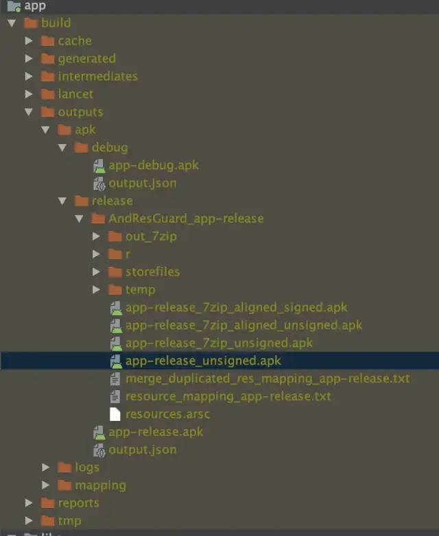 andResGuard {// mappingFile = file("./resource_mapping.txt")mappingFile = nulluse7zip = trueuseSign = true// 打开这个开关,会keep住所有资源的原始路径,只混淆资源的名字keepRoot = false// 设置这个值,会把arsc name列混淆成相同的名字,减少string常量池的大小fixedResName = "arg"// 打开这个开关会合并所有哈希值相同的资源,但请不要过度依赖这个功能去除去冗余资源mergeDuplicatedRes = truewhiteList = [// for your icon"R.drawable.icon",// for fabric"R.string.com.crashlytics.*",// for google-services"R.string.google_app_id","R.string.gcm_defaultSenderId","R.string.default_web_client_id","R.string.ga_trackingId","R.string.firebase_database_url","R.string.google_api_key","R.string.google_crash_reporting_api_key"]compressFilePattern = ["*.png","*.jpg","*.jpeg","*.gif",]sevenzip {artifact = 'com.tencent.mm:SevenZip:1.2.17'//path = "/usr/local/bin/7za"}/*** 可选: 如果不设置则会默认覆盖assemble输出的apk**/// finalApkBackupPath = "${project.rootDir}/final.apk"/*** 可选: 指定v1签名时生成jar文件的摘要算法* 默认值为“SHA-1”**/// digestalg = "SHA-256"