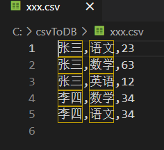 csv文件导入结果: