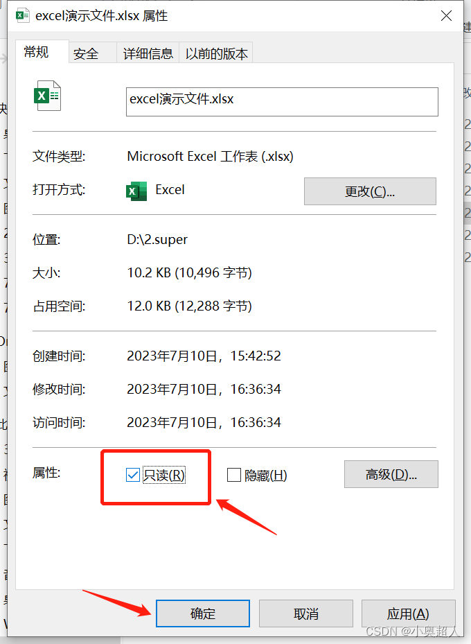 右键点击文件,查看文件属性,在属性界面,勾选上只读属性就可以了。