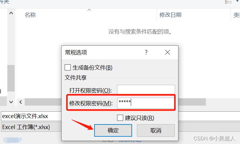 然后我们在修改权限后面的输入框内输入想要设置的密码,点击确定就完成设置了。文件在打开时会提示需要输入密码才能修改。