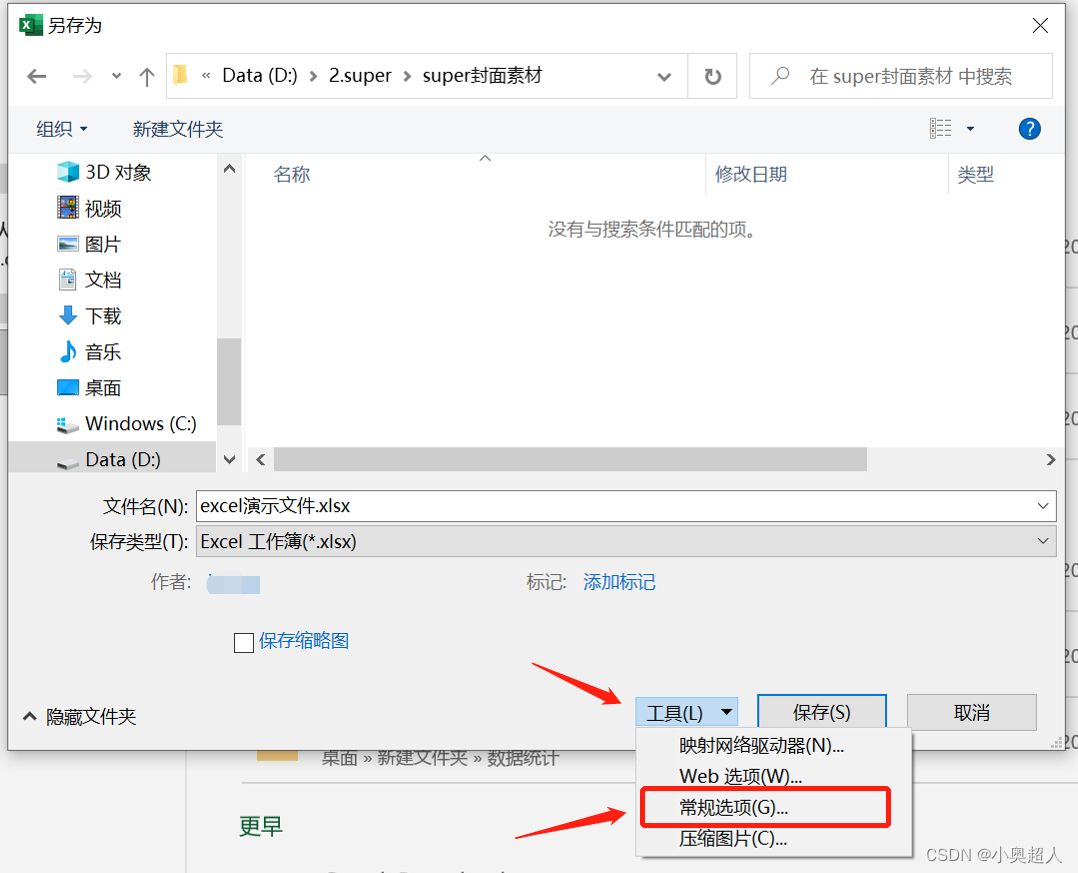 打开文件,将文件另存为,在选择文件保存路径的界面中,我们点击工具按钮,选择常规选项