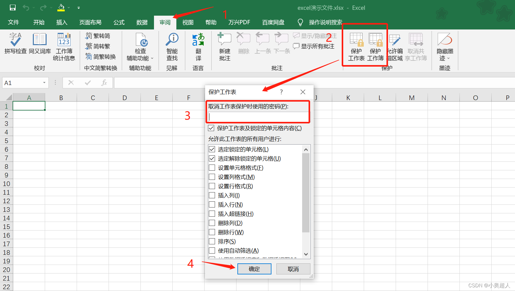 这里的限制编辑被分为了两种方式,分别是保护工作表、保护工作簿。两种方式所负责的区域也不同,不过它们设置的方法几乎一样,我们先一起来看一下如何设置,然后再和大家说一下两者之间功能的区别。