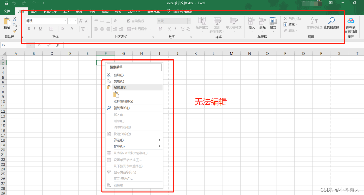 保护工作表,保护的是工作表内的数据内容,也就是单元格内的数据,当我们设置了保护工作表,excel功能栏中的大部分功能都是无法使用的。