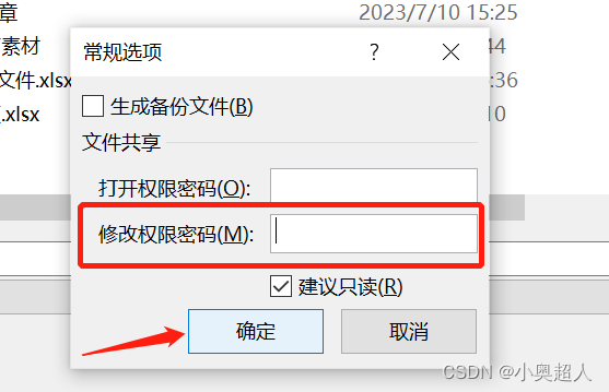 然后我们选择在修改权限后面的输入框内输入想要设置的密码。点击确定,将文件进行保存就可以了。