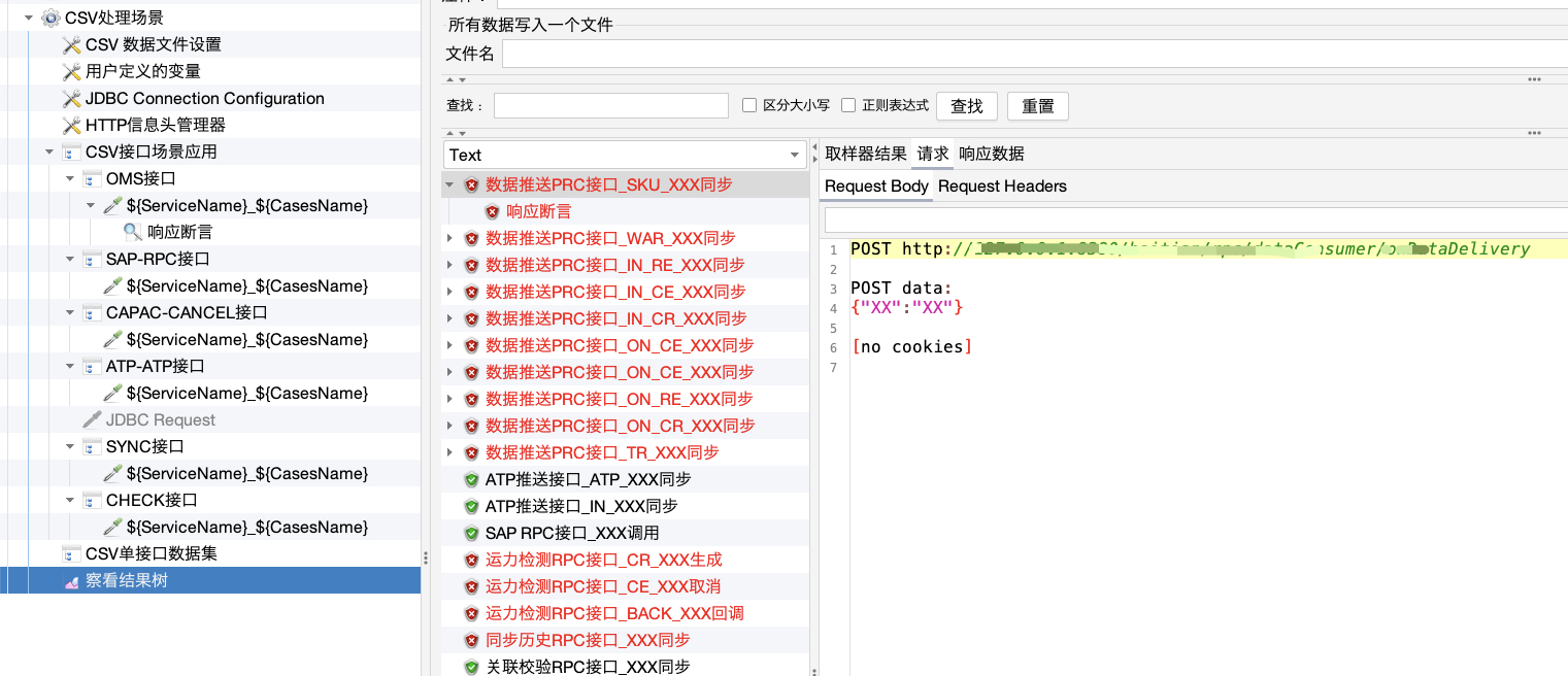 - 新增结果树进行查询,发现CSV配置及自定义配置全部按照指定的形式进行传参数,简化原有的配置并与cases联动