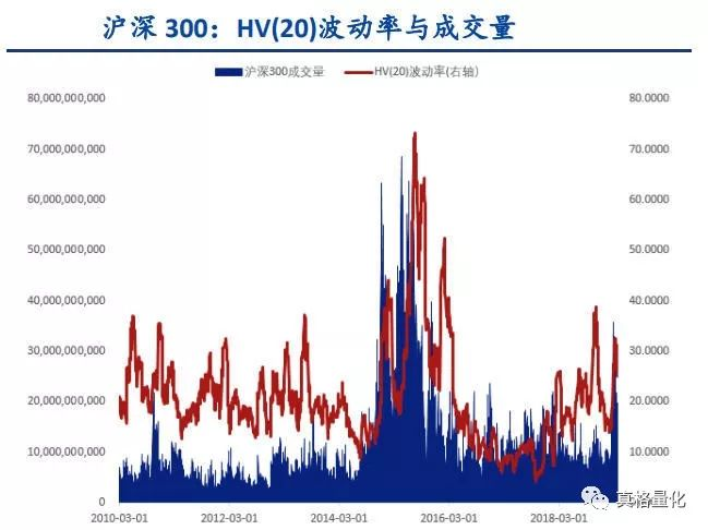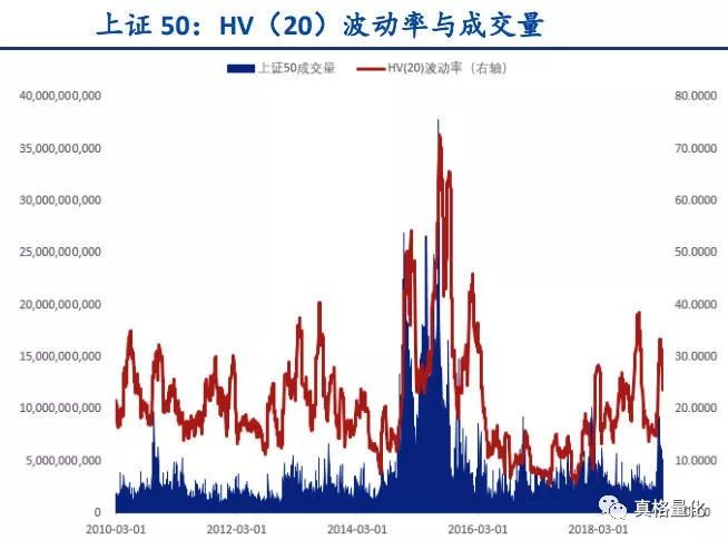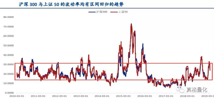 这代表着波动率存在边界,分布类似正态分布的特征。波动率处于低位或者高位时会向均值附近回归。如此一来,在波动率高位时可考虑做空波动率策略,历史波动率长期低位时考虑做多波动率策略。
