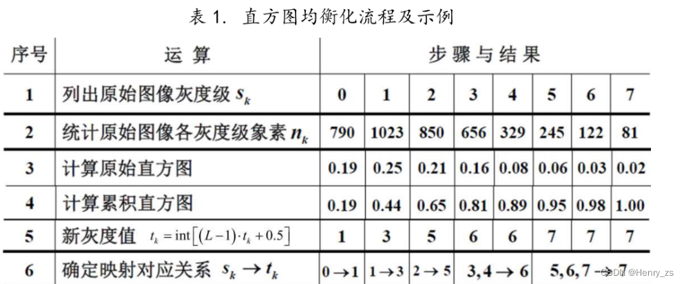 我们假设图像的灰度值是一 3bit,灰度级为8的图像,直方图均衡化的过程如下: