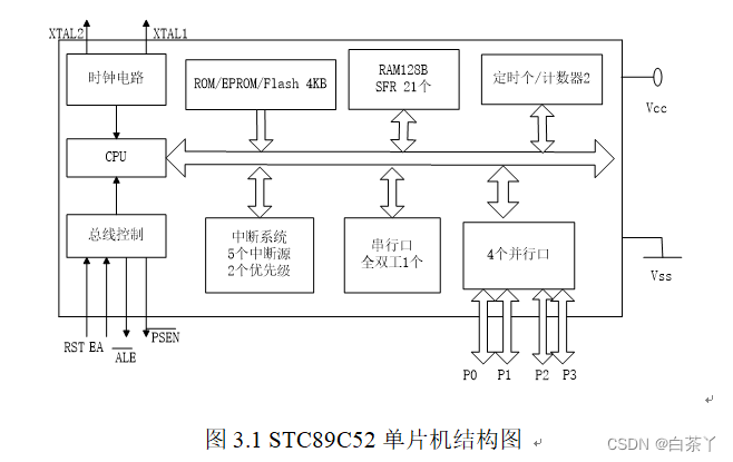 STC89C52单片机管脚如图3.2所示,部分引脚说明: