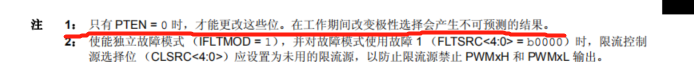 在配置PWM寄存器时,也就是初始化时,也要注意先把PTEN位置0,也就是先关闭PWM输出,再进行配置,之后再使能PWM输出。