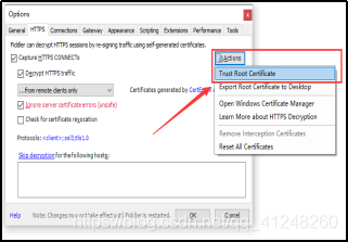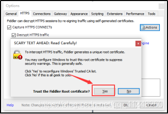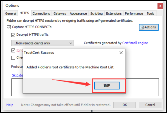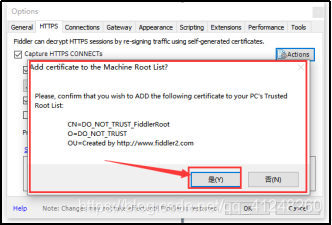 证书安装提示:点击Yes,留意一下红框里面的内容,【DO_NOT_TRUST_FiddlerRoot 】,这个就是证书的名称。最后一只点击确定,这样Fiddler证书就已经添加成功了。