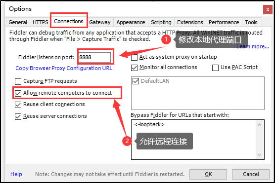 (1)fiddler监听端口默认是 8888,你可以把它设置成任何你想要的端口。
