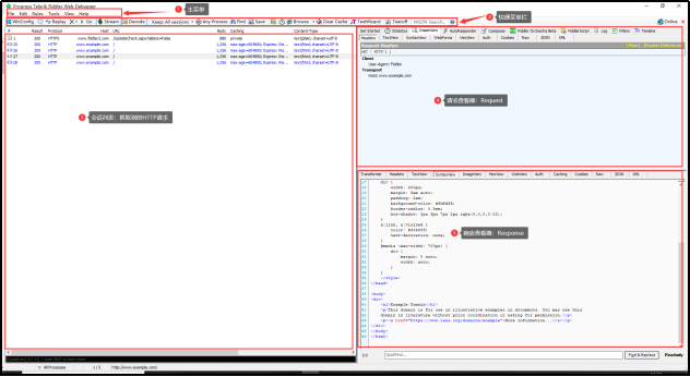 提供headers、textview、hexview,Raw等多种方式查看单条http请求的请求报文的信息,分为上下两个部分,上半部分是请求头部分,下半部分是响应头部分。对于每一部分,提供了多种不同格式查看每个请求和响应的内容。