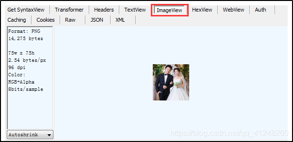 JPG 格式使用 ImageView 就可以看到图片,选择一条Content-Type是image/jpeg的回话,点击TextView
