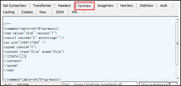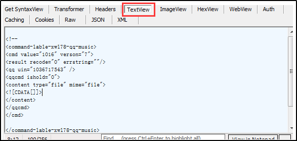 HTML/JS/CSS 使用 TextView 可以看到响应的内容。选择一条Content-Type是text/html的回话,点击TextView