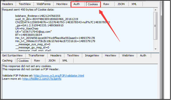 Cookies标签可以看到请求的cookie和响应的set-cookie头信息。