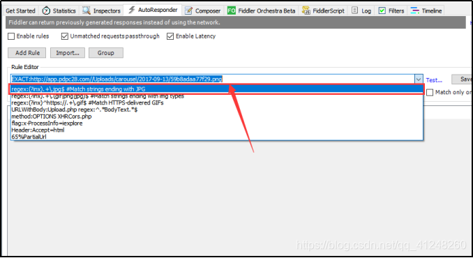 3、这个时候我们切换到AutoResponder这个界面,点击鼠标左键,把要重定向的这个session会话拖动到AutoResponder界面中