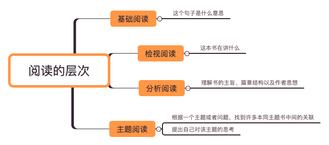 对于这样的书,阅读有4个层次,可以分为基础阅读、检视阅读、分析阅读和主题阅读。(如下)