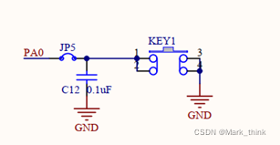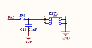 按键按下和松开的一瞬间,手有抖动。在电流上的表现,电平突然降低或抬高,影响管脚的高低电平检测,因此要利用硬件消抖,下文有软件消抖代码。