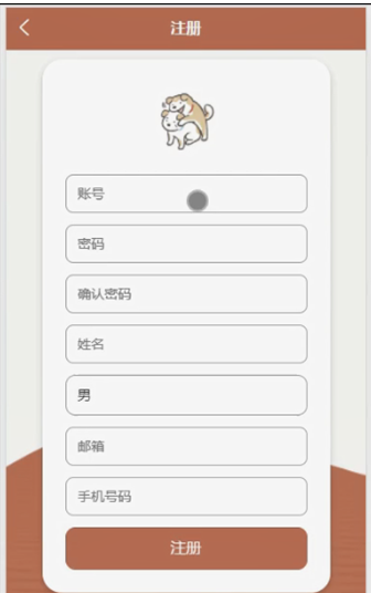 用户注册,在注册表页面能过填写账号、密码、确认密码、姓名、性别、邮箱、手机号码等信息进行用户注册操作;如图5-2所示。
