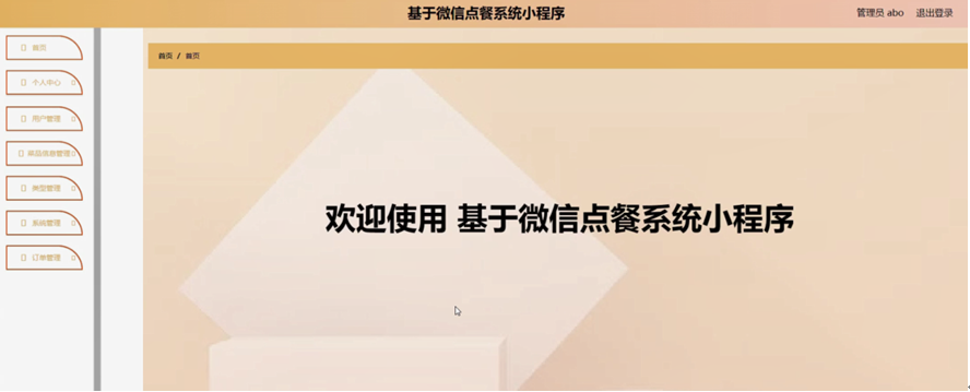 管理员登陆系统后,可以对首页、个人中心、用户管理、菜品信息管理、类型管理、系统管理、订单管理等功能进行相应操作,如图5-8所示。