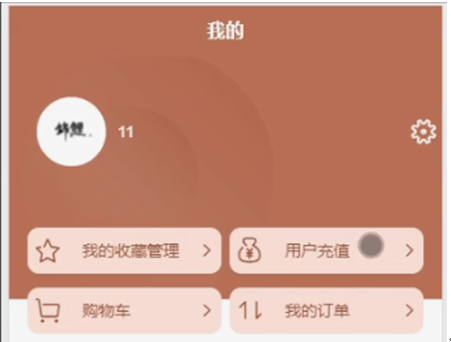 用户,在我的页面可以对个人中心、我的收藏管理、用户充值、购物车、我的订单等详细信息进行操作,如图5-5所示。