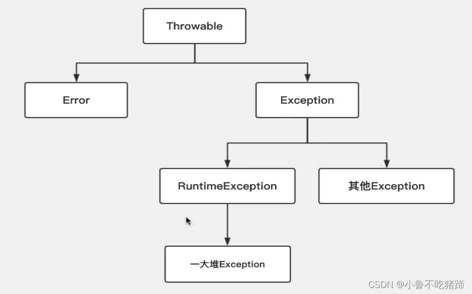 1.RuntimeException:运行时异常,一般不手动处理,出了问题再处理 2.其他Exception:必须要经过手动处理 3.Error:一般指的是系统级错误