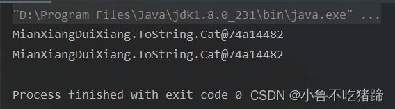 public class Cat {public static void main(String[] args) {//注:字符串是例外的//str1 、str2使用的是同一个内存地址String str1 = "小鲁";String str2 = "小鲁";//并没有单独的占内存空间System.out.println(str1 == str2);//tureSystem.out.println(str1.equals(str2));//ture}