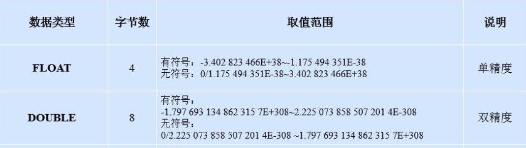 - float //单精度浮点数
