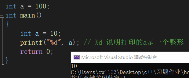 注意:当局部变量和全局变量同名的时候,局部变量优先使用。