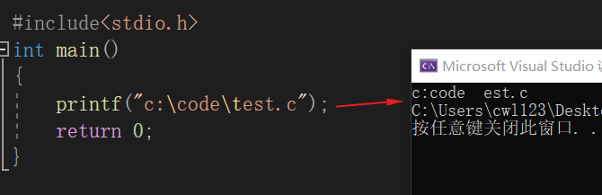 假如我们要在屏幕上打印一个目录:c:\code\test.c