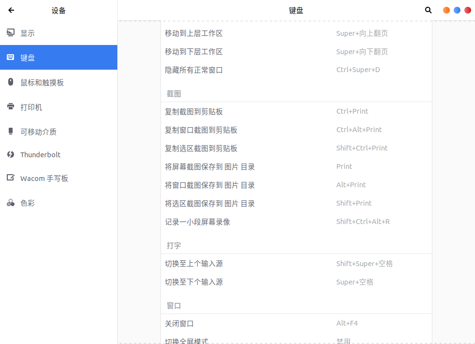 可以自由设置截图的快捷键:打开 设置-> 设备 -> 键盘截图快捷键