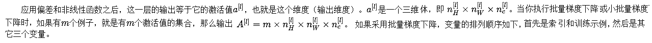 ,l 层的输入就是上一层的输出,因此上标要用[l-1]。神经网络这一层中会有输出,它本身会输出图像。其大小为