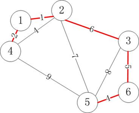 若要将n个城市之间原有的公路改造为高速公路,这些城市之间原有公路网如右图所示,每条边上的数字表示高速公路的改造成本(单位:10亿元)。如何以最低的成本来构建高速公路网,使得任意两个城市之间都有高速公路相连?