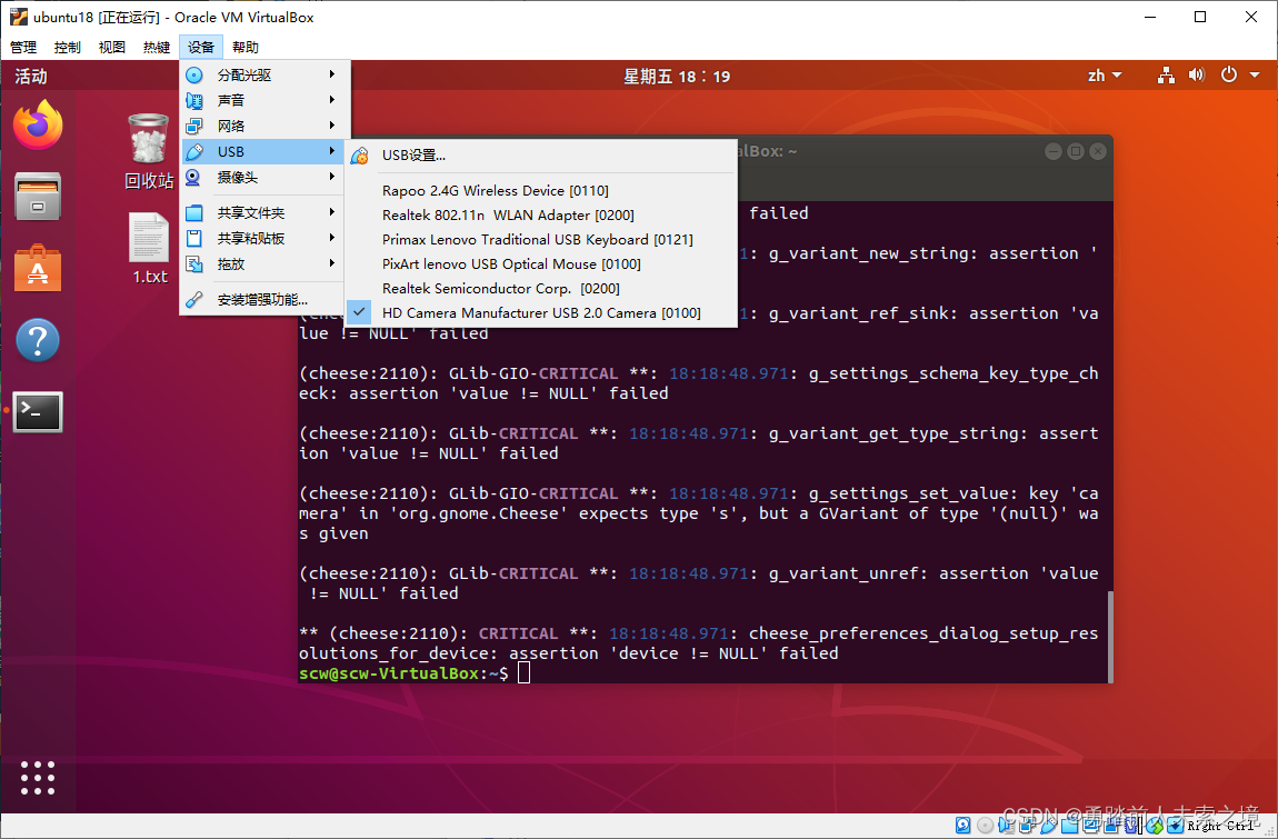 设备 -> 摄像头【这个选项选择摄像头无效 虽然在/dev中有video0】