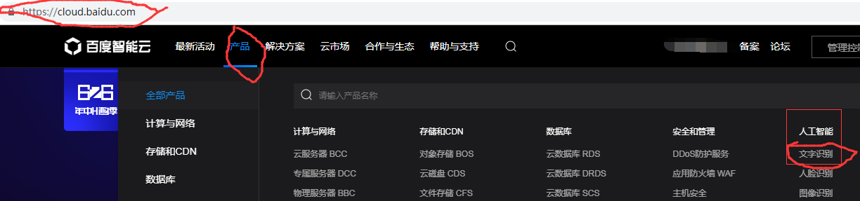 打开连接:https://cloud.baidu.com 登录自己的百度账号