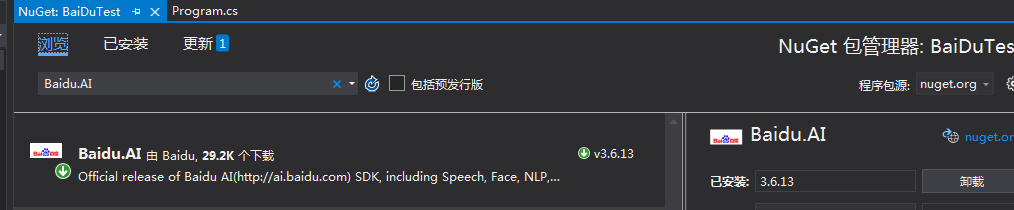 C# 调用百度ai识别图片文字功能