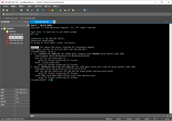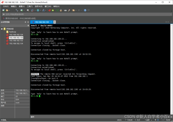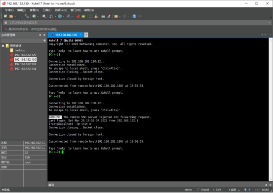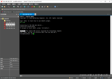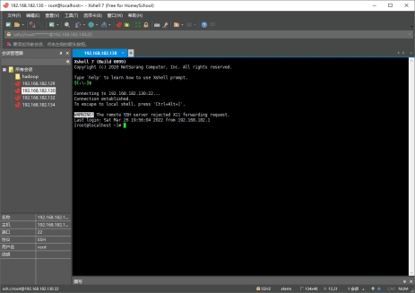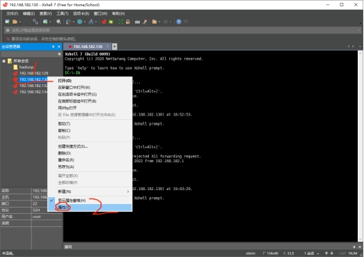 5.重启完成后,在Xshell会话管理器下面选择刚才保存了公钥的虚拟机,右击点击属性