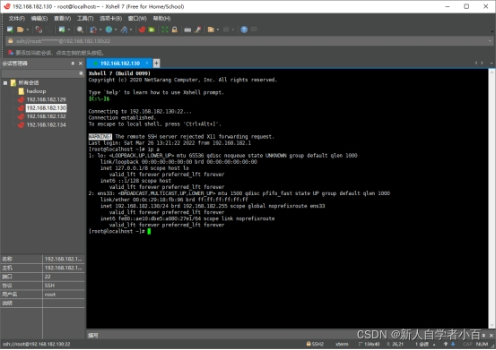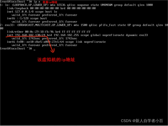 利用Xshell远程登录虚拟机,并且使用密钥认证 1. 咱们还是用同一台虚拟机,打开虚拟机查看ip地址