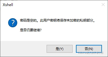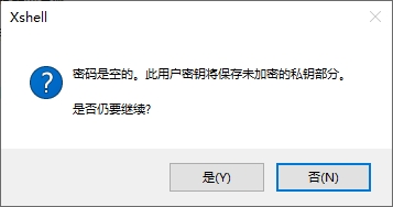 因为没有设置密钥的密码所以还会出现一个提示框,我们选择是。如下图: